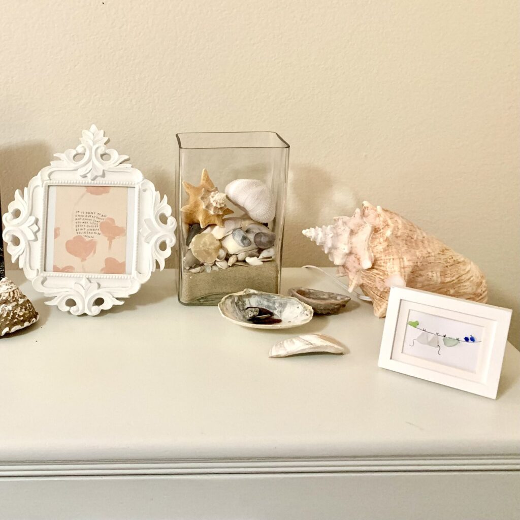 Create a memory keepsake using shells, ocean treasures, and even personal snapshots.