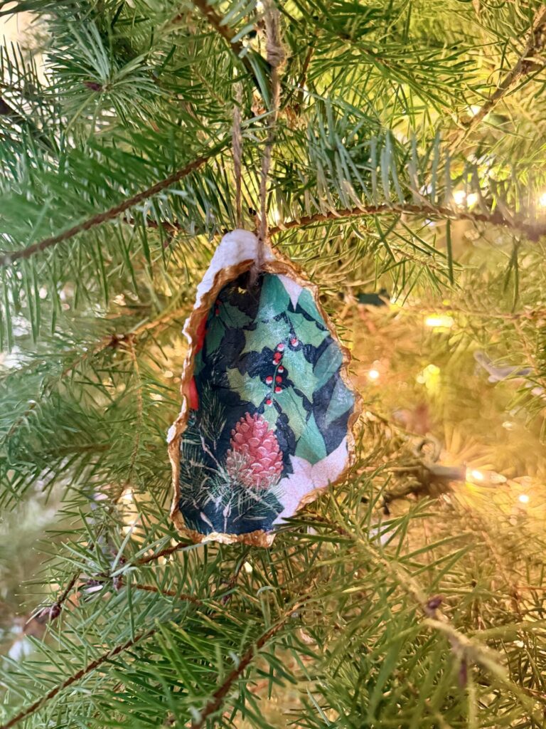 These earthy ornaments use natural materials for coastal holiday decor.